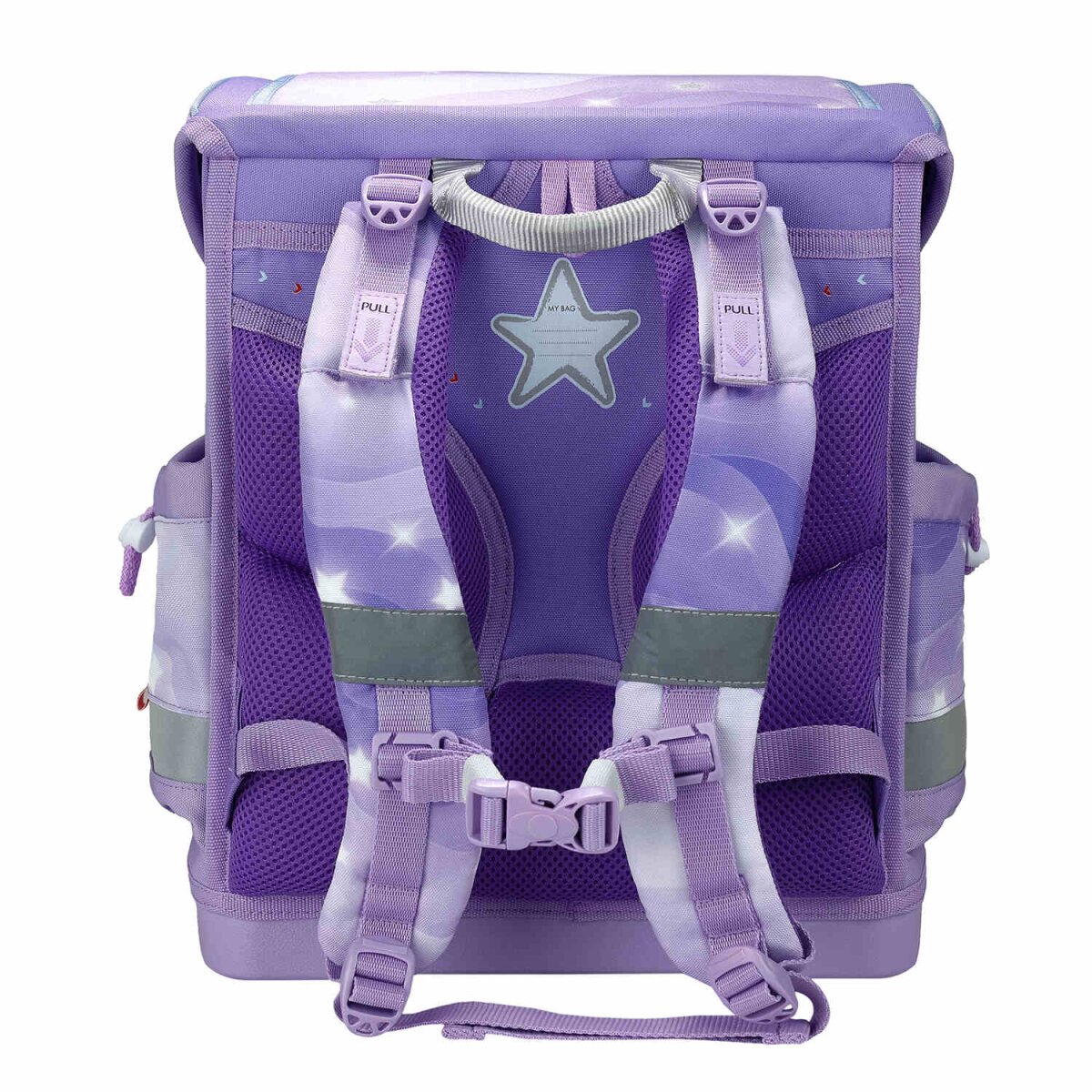 Belmil Classy Plus ergonomisches Schulranzen-Set 5-teilig "Over the Rainbow" mit Brustgurt, Magnetverschluss, Patch Set 3 Stück