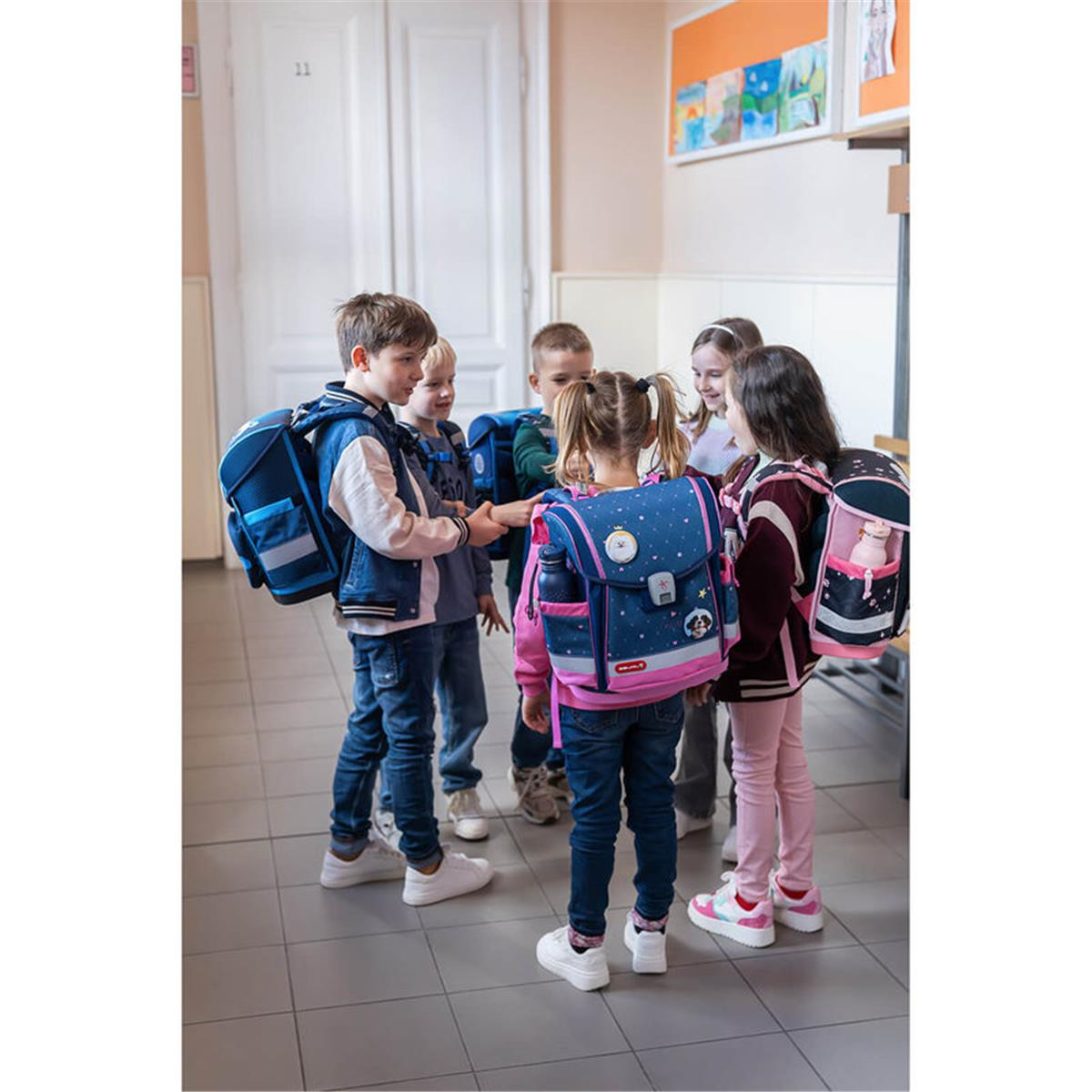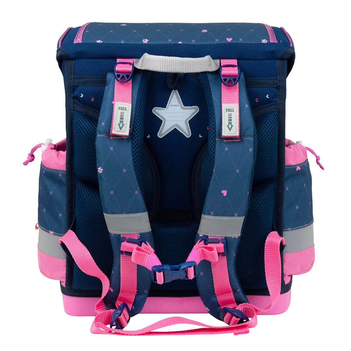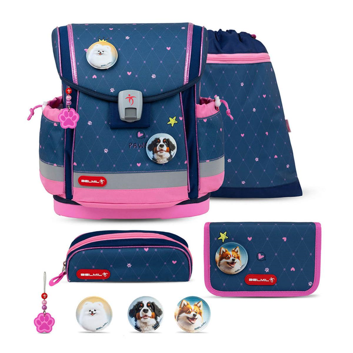 Belmil Classy Plus ergonomisches Schulranzen-Set 5-teilig "Hearts" mit Brustgurt, Magnetverschluss, Patch Set 3 Stück