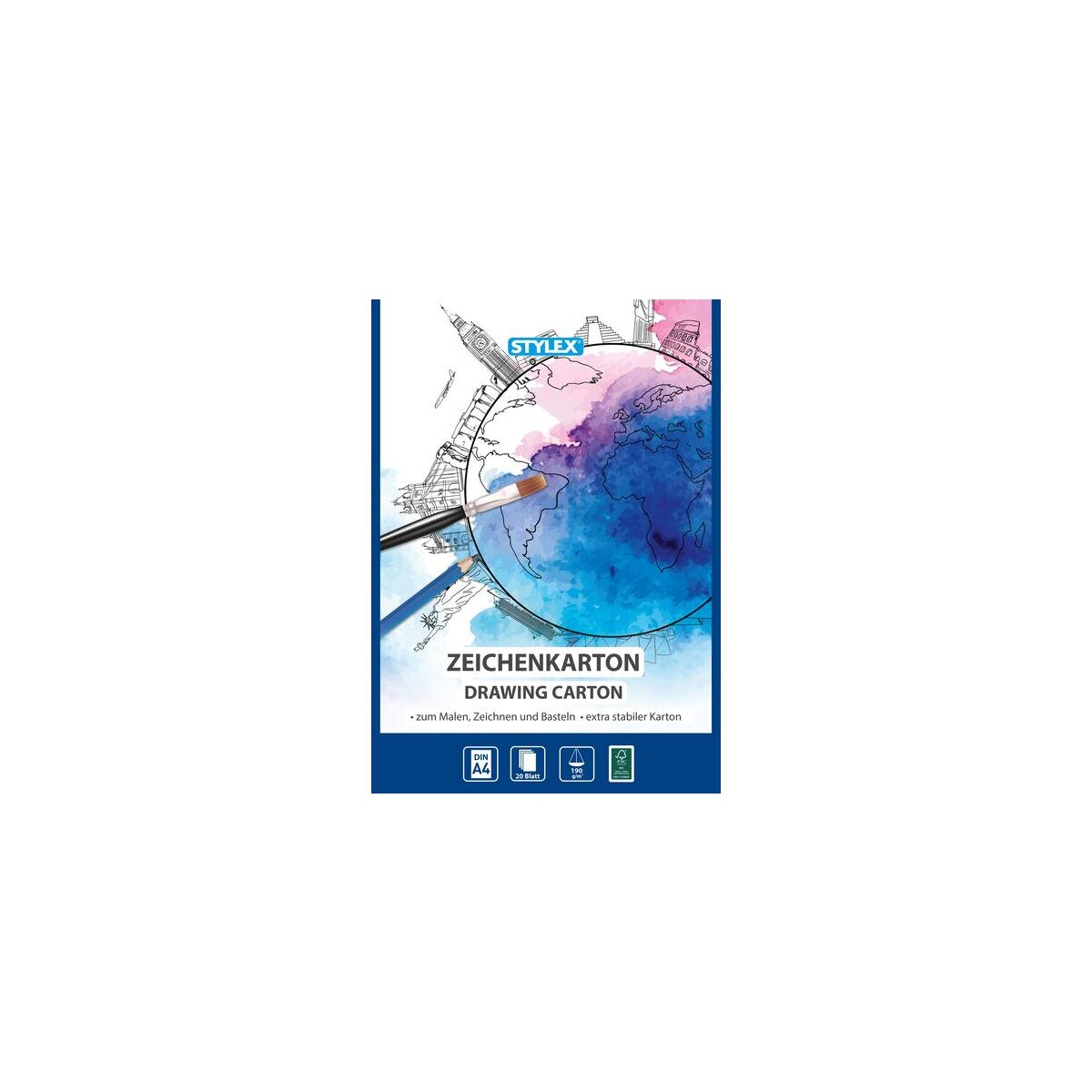 Stylex Zeichenkarton 190gr. 20, Blatt DIN A4