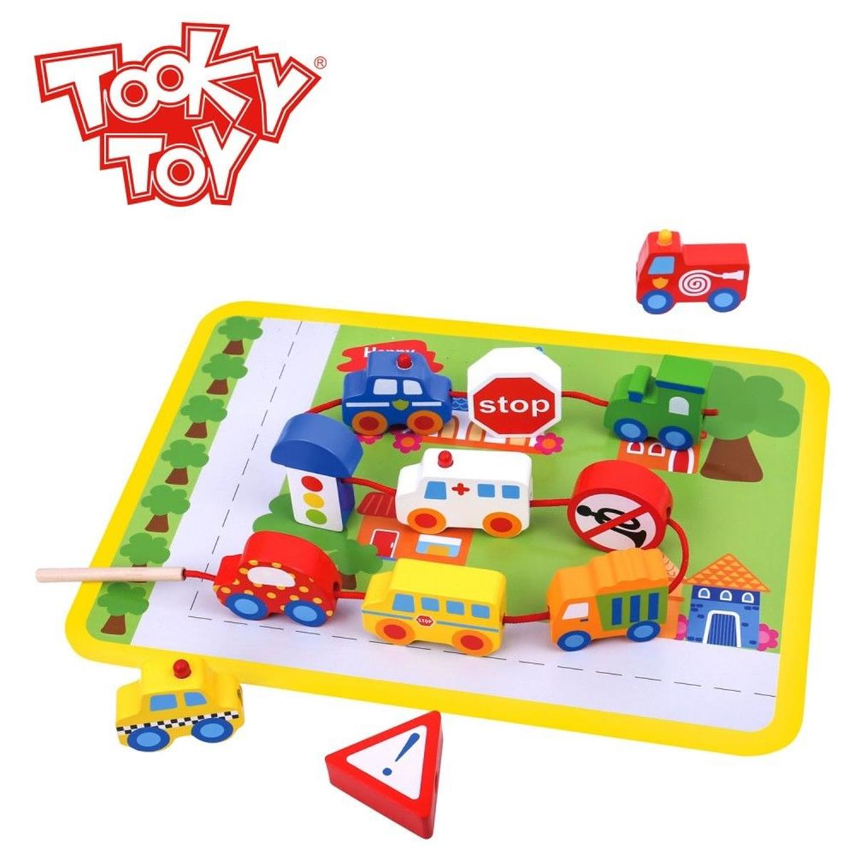 Tooky Toy Fädelspiel aus Holz Straßenverkehr
